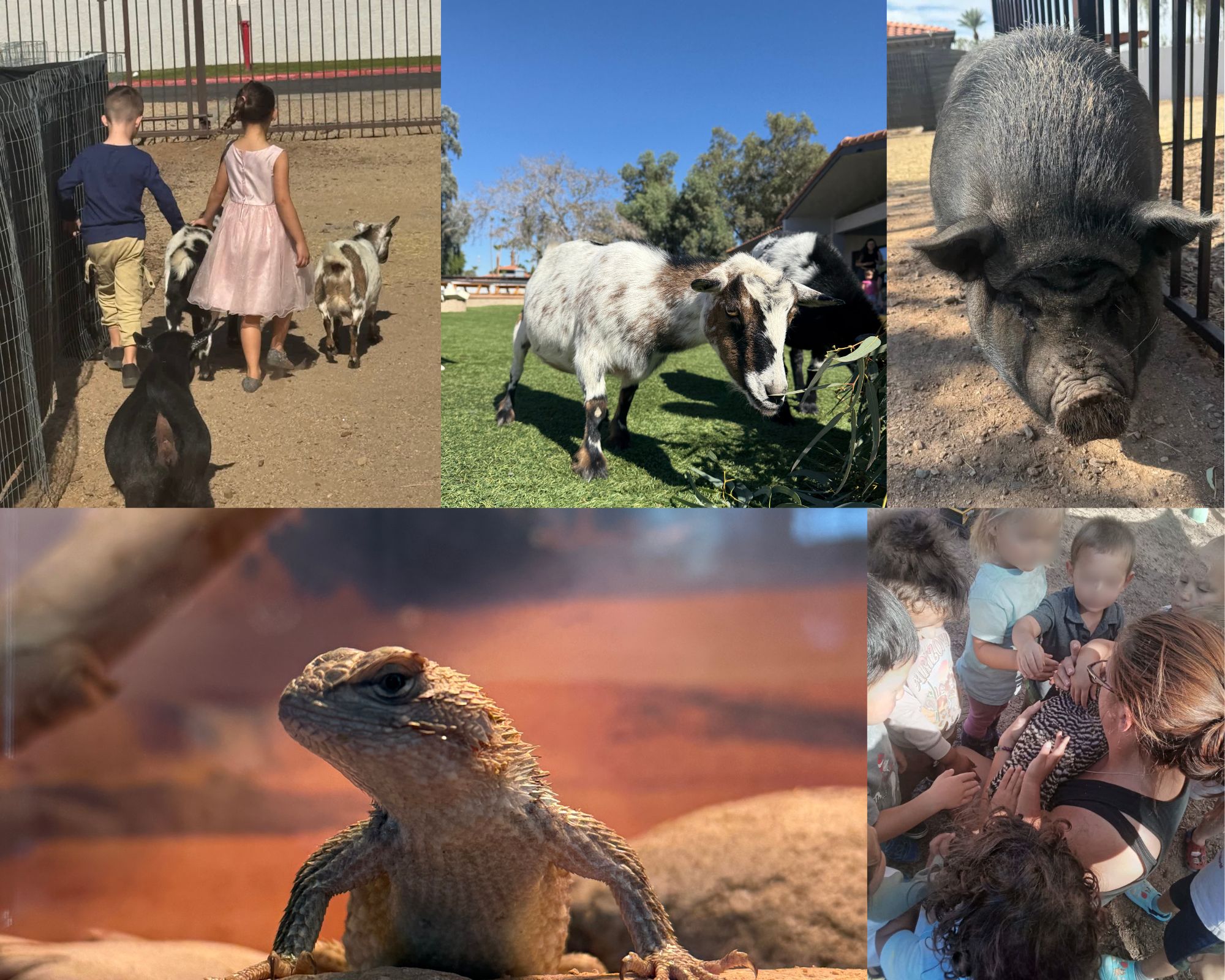 One of the most beloved aspects of Abode Peoria Preschool is our wonderful group of animals on campus. We are home to three goats, two pigs, four chickens, and a lizard, giving children unique, hands-on opportunities to connect with living creatures.